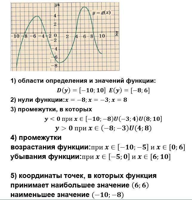 5) координаты точек, в которых функция принимает наибольшее и наименьшее значения.