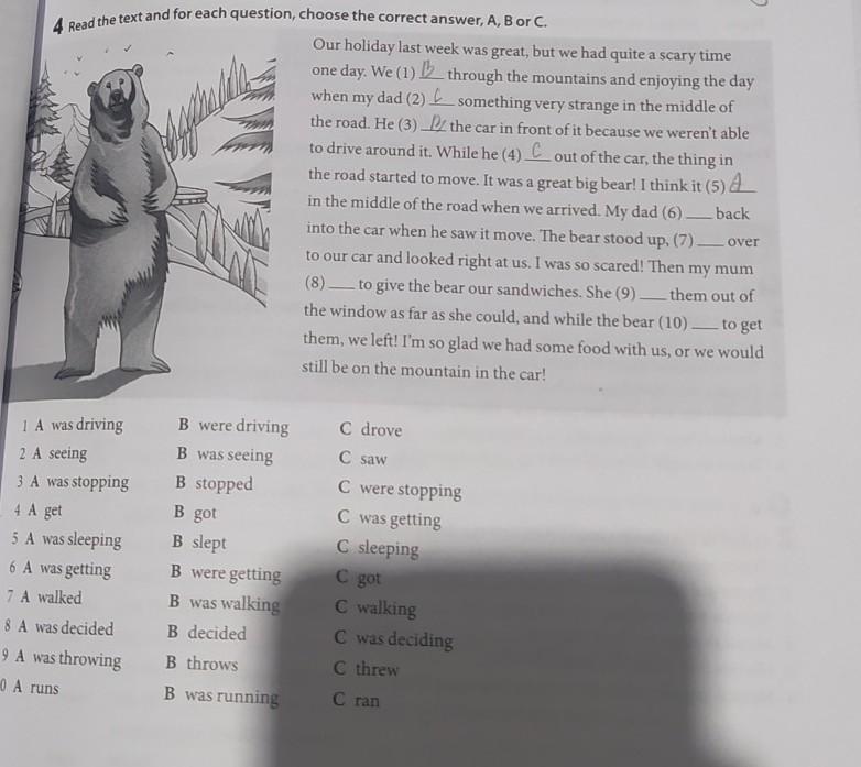into the car when he saw it move. The bear stood up, (7) — over