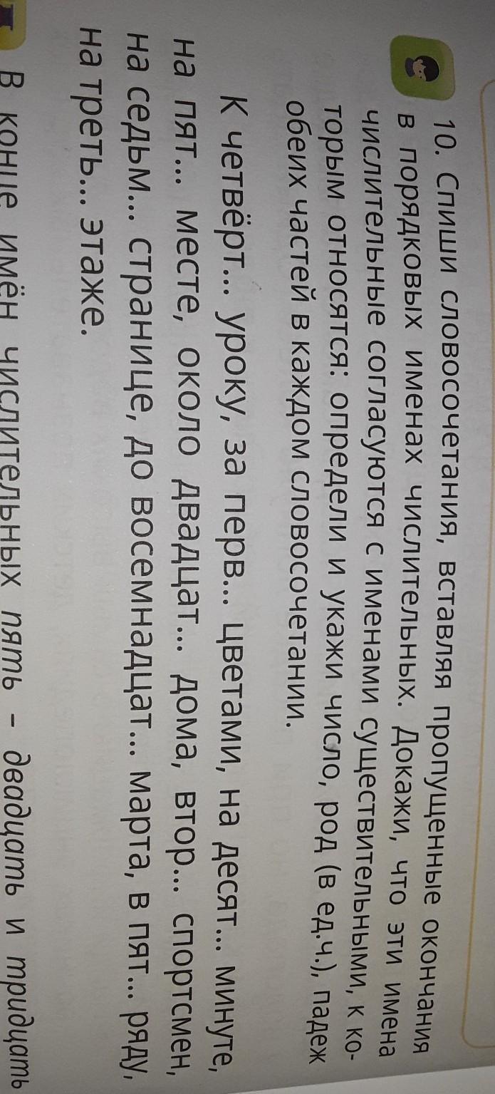 К четвертому уроку(ед.ч, д.п, м.р),за первыми цветами (мн.ч, т.п,м.р),на десятой минуте (ед.ч, п.п,ж.р),на пятом месте (ед.ч,с.р,пп), около двадцати дома (мн.ч,ж р,р п), второй спортсмен(ед.ч,и.п,М. р), на седьмой странице (ед.ч,ж р,п.п), до восемьнадцатого марта (ед.ч,М.р,р.п), в пятом ряду(ед.ч,п.п,м.р), на третьем этаже(ед.ч,м.р,п.п)