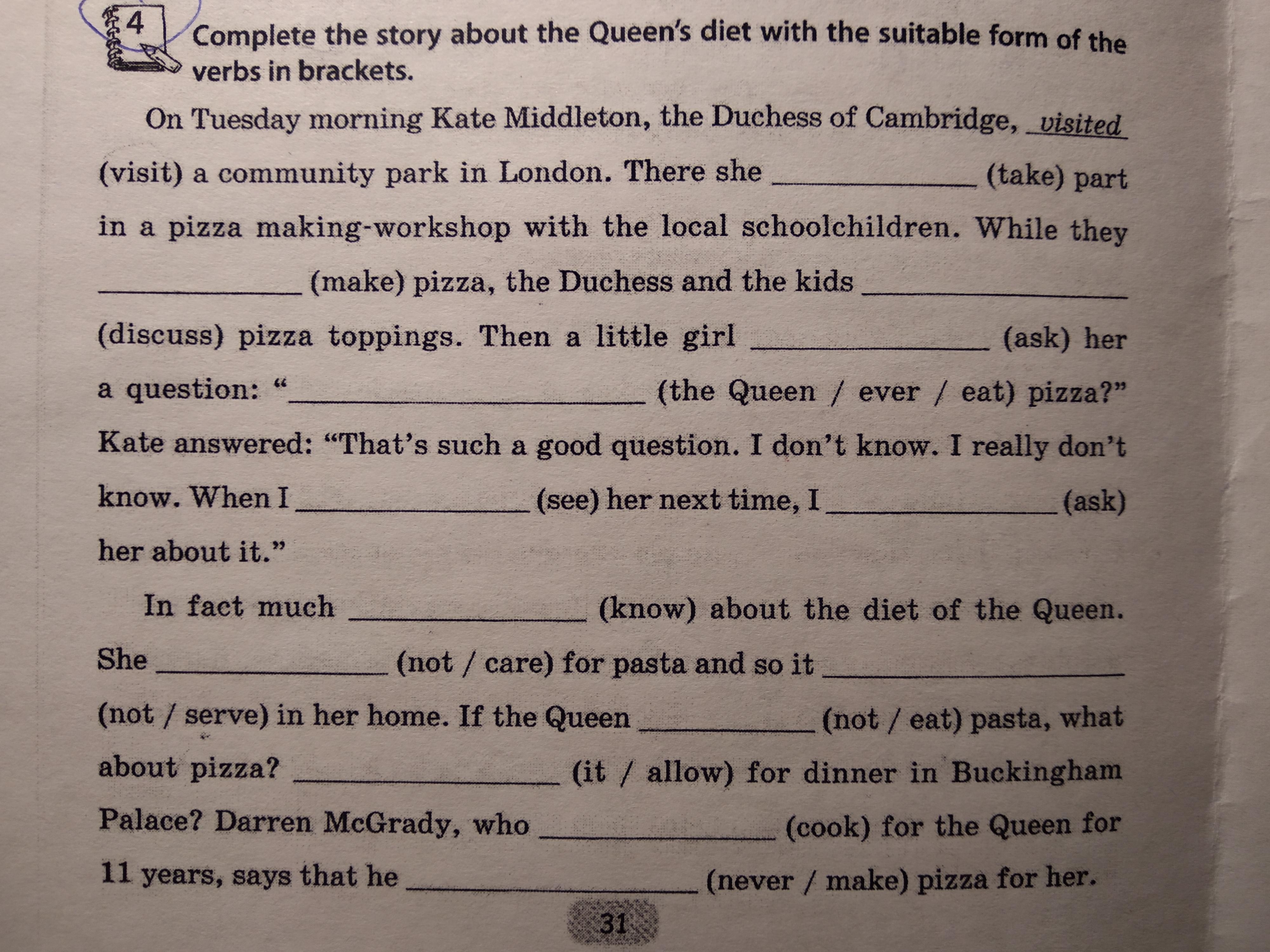 complete the story about the Queen's diet with the suitable form of the verbs in brackets