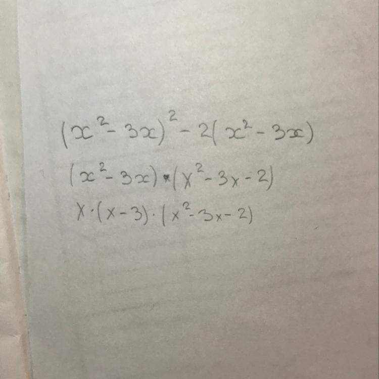 (х²-3х)²-2(х²-3х)=(х²-3х)(х²-3х-2)=х(х-3)(х²-3х-2)
