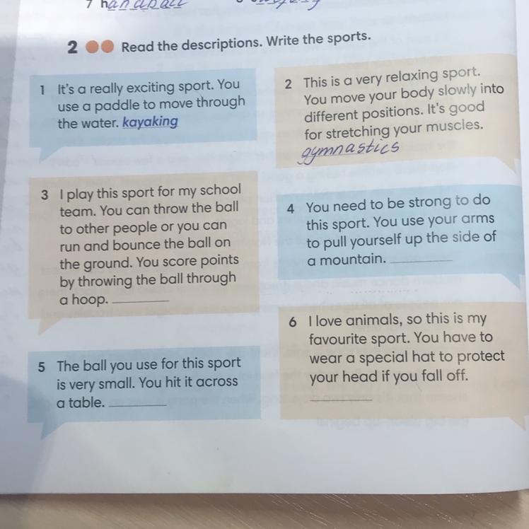 3 basketball 4 climbing 5 ping-pong 6 baseball