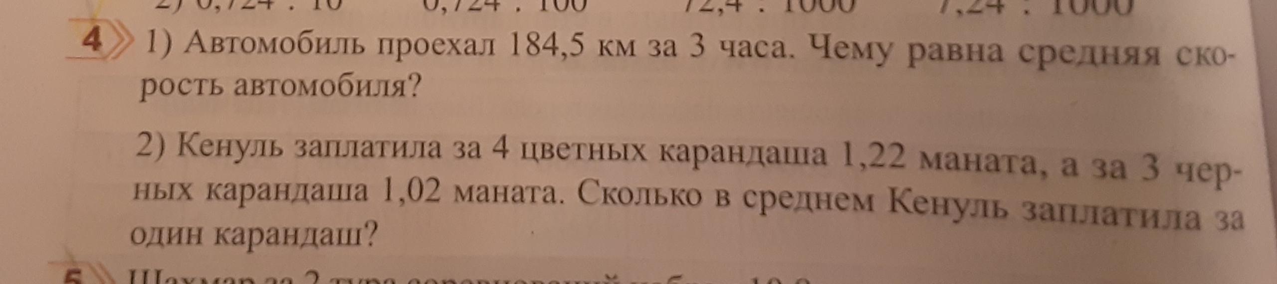 2) (1,22+1,02) : (4+3) = 2,24:7 = 0,32 маната средняя цена 1 карандаша