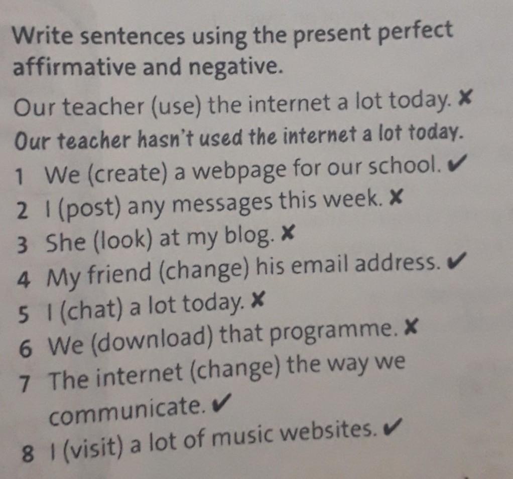 5 Напишите предложения, используя настоящее совершенное утвердительное и отрицательное.