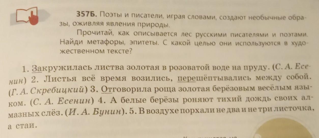 Метафоры - закружилась листва, листья возились и перешёптывались, отговорила роща, стаи листочков
