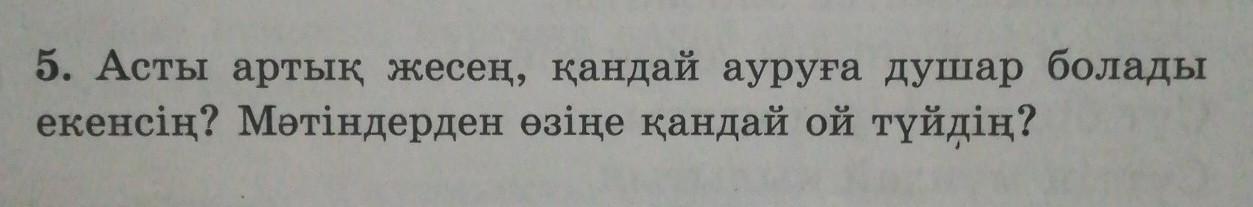Асты тым артық мщлшерде жеу ол адам өміріне зиян, көп теген ауруларды алып келеді, мысалға айтатын болсақ семіздік.Семіздік әлем бойынша көптеген адамдардын проблемалары сонымен қатар асқазан, бүйрек ауруларына алып келеді.Өзімнің ойынды қарның тойсада көзім тоймады деп тамақты көп жеуге болмайды