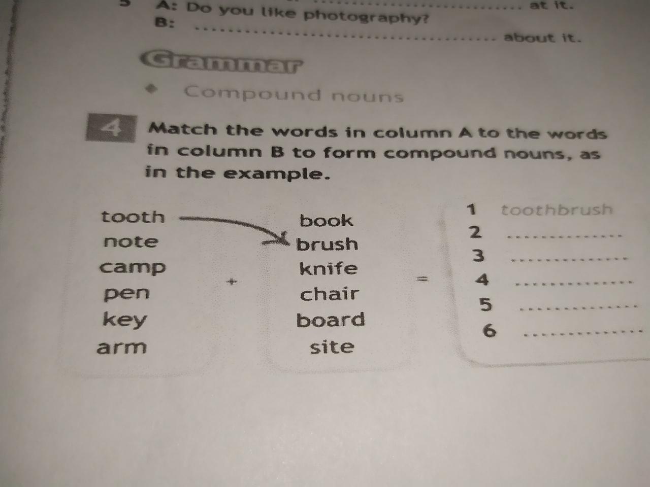 Toothbrush, notebook, campsite, penknife, keyboard, armchair