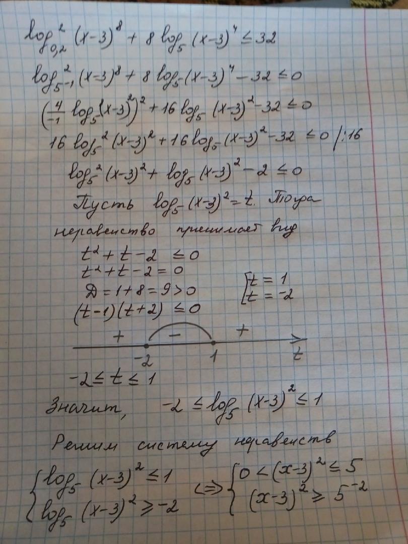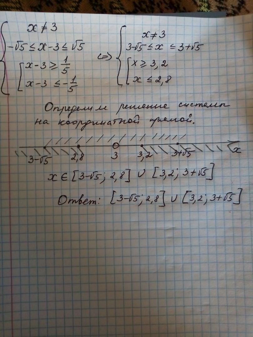 x∈ [ 3-√5; 2,8] ∪[3,2; 3+√5]