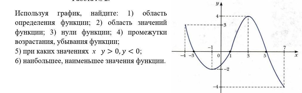 y < 0 при x ∈ (- 3 , 1) и (5 , 7]
