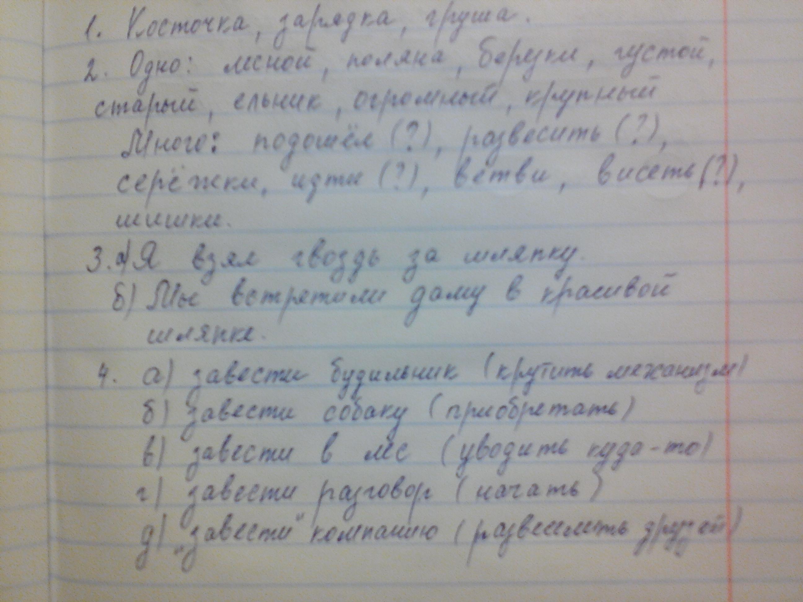 2)(Многозн.) Подошёл, развесили, идёт, старый, висят, шишки.