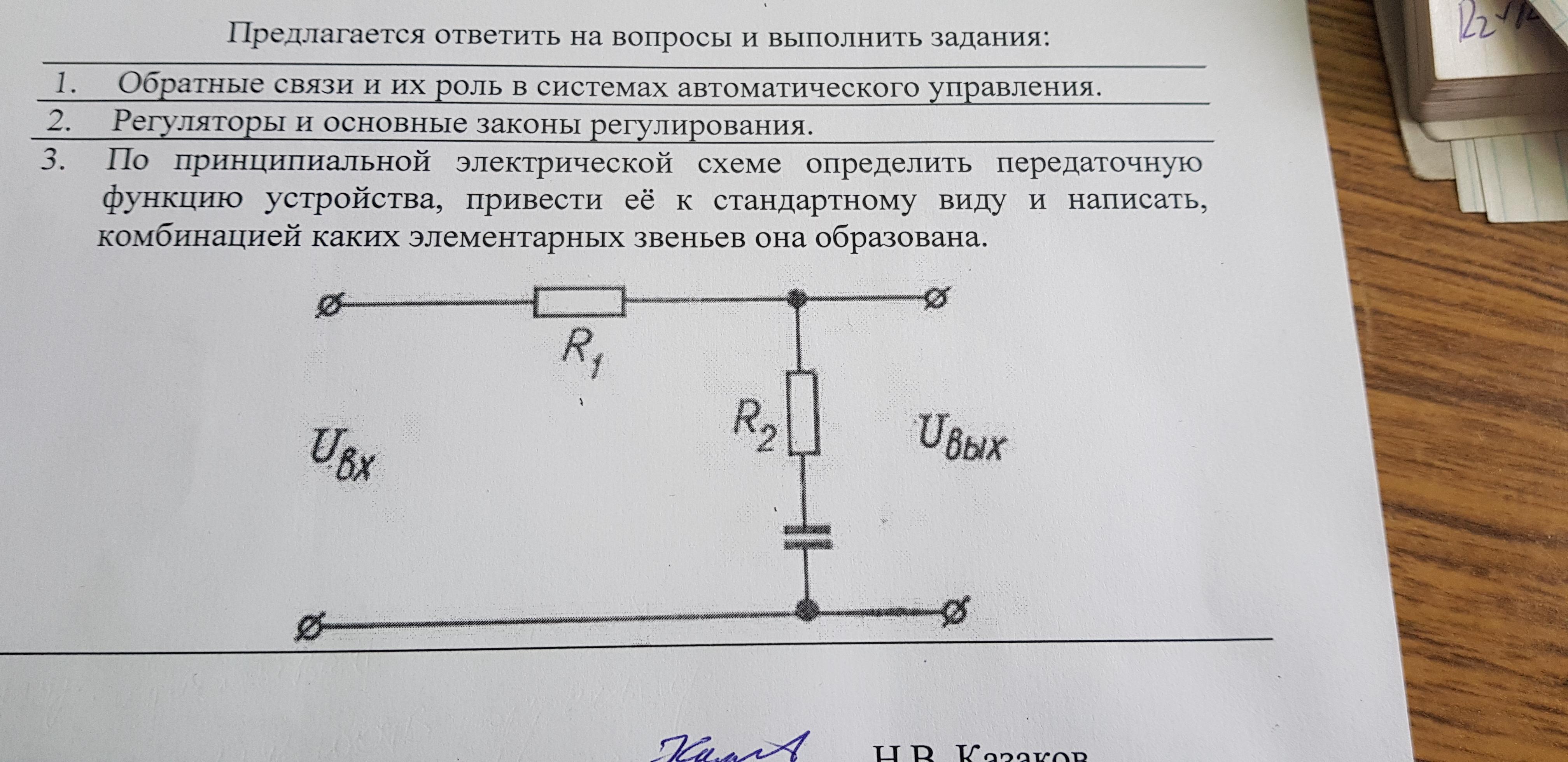 Передаточная функция W(p)=Uвых(p)/Uвх(р)=