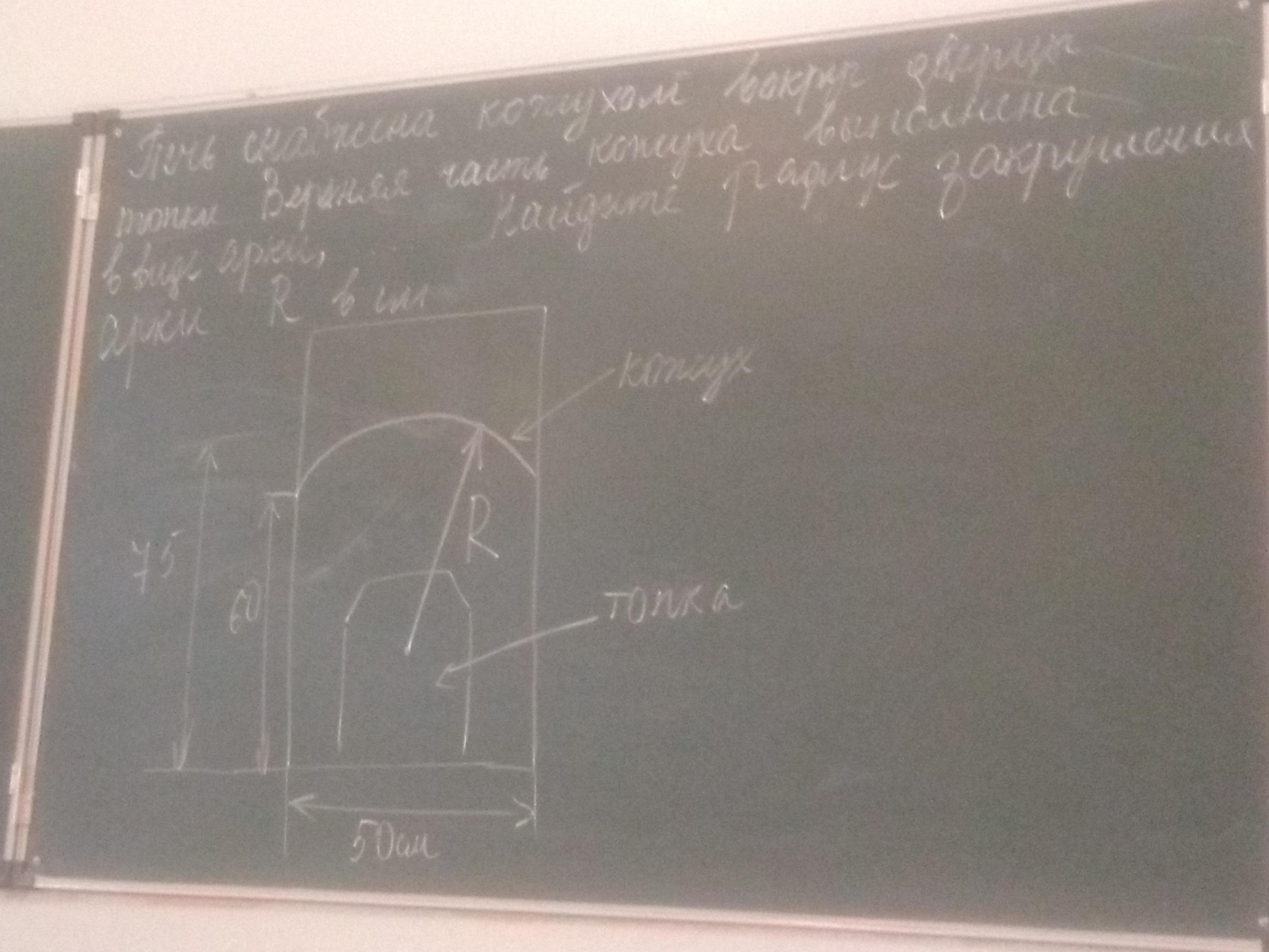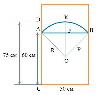 Печь снабжена кожухом вокруг дверцы топки . Верхняя часть кожуха выполнена в виде арки.... Найдите радиус закругления арки R в см