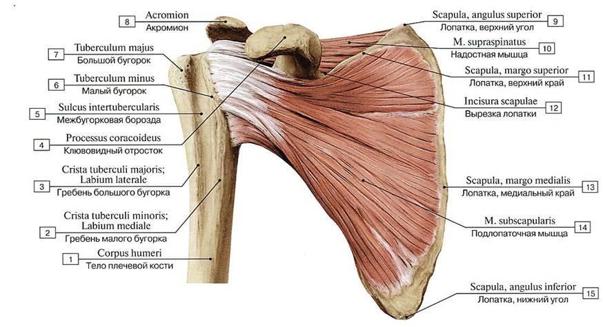 К нижнему краю лопатки прикрепляется подлопаточная мышца