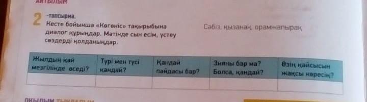 1)Кузде (сабиз) ,Кузде (кызанак) Коктемде(орамжапырак).