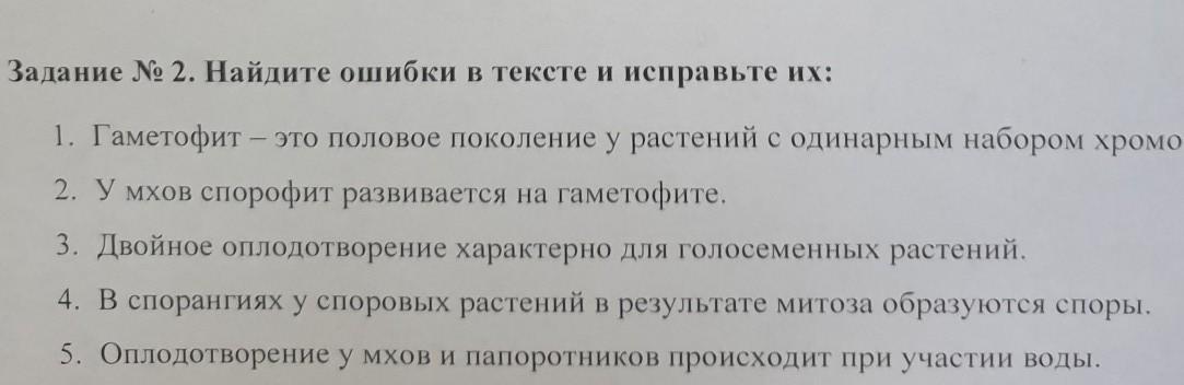 1. Гаметофит- это половое поколение у растений с одинарным набором хромосом.