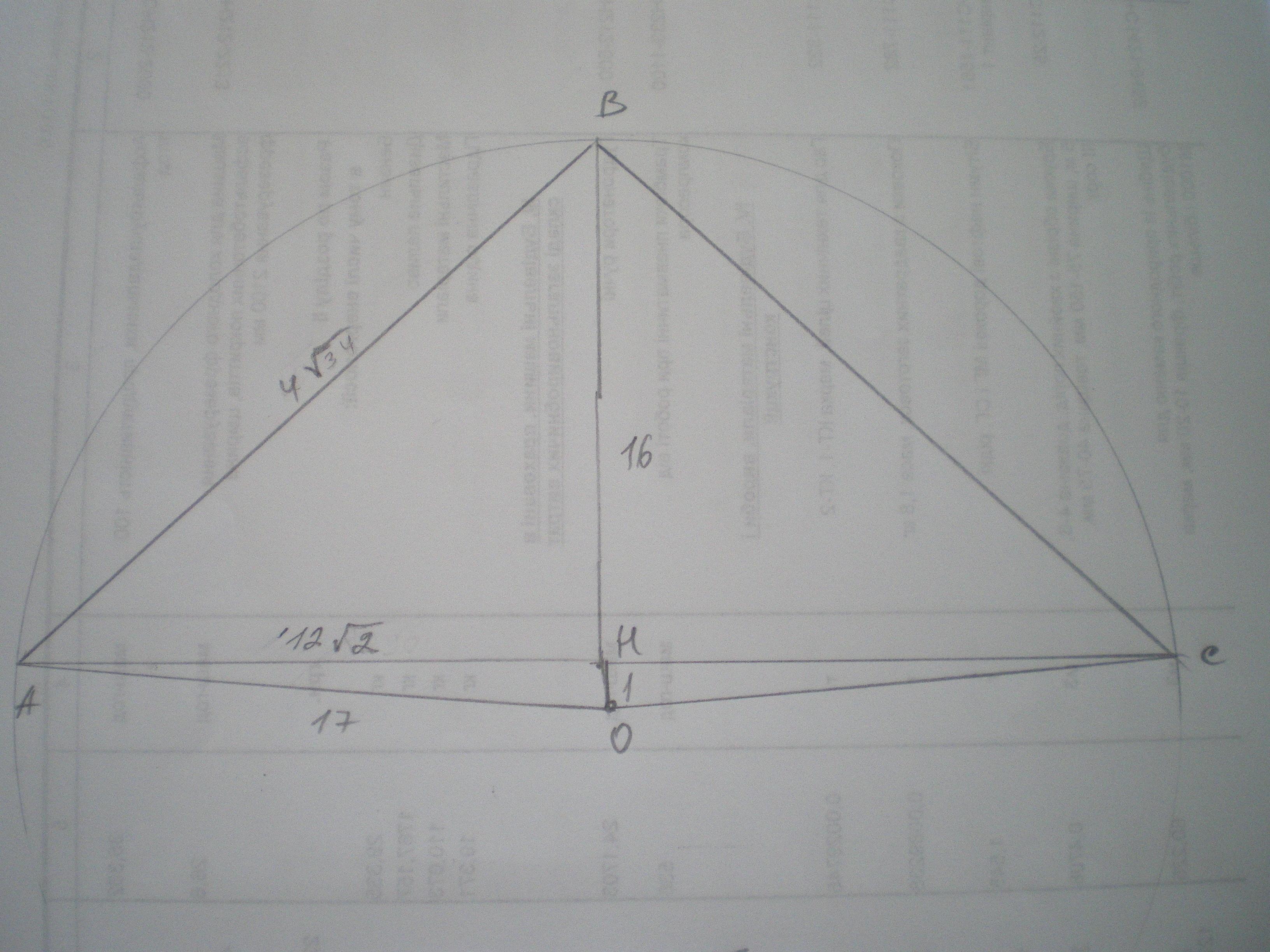 Рассмотрим ΔАОН - прямоугольный по определению высоты треугольника. АО=17 см; ОН=ВО-ВН=17-16=1 см.