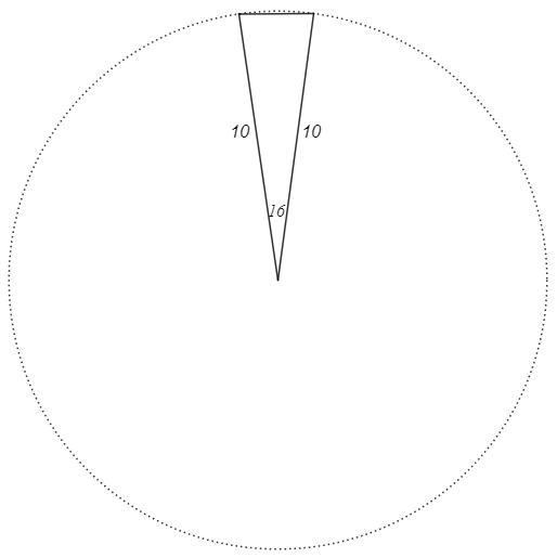угол между двумя радиуеами окружности равеь16гдадусов. Найдите с точностью до 0,1ди длину хорды, соердиняющей концы этих радиусов, если диаметр окружности равен 10дм