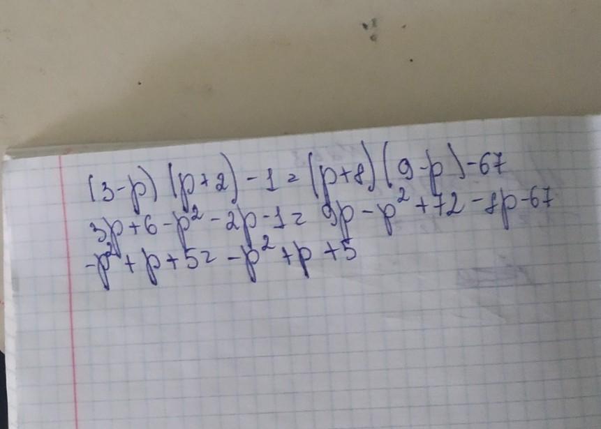 (3-p)(p+2)-1=(p+8)(9-p)-67