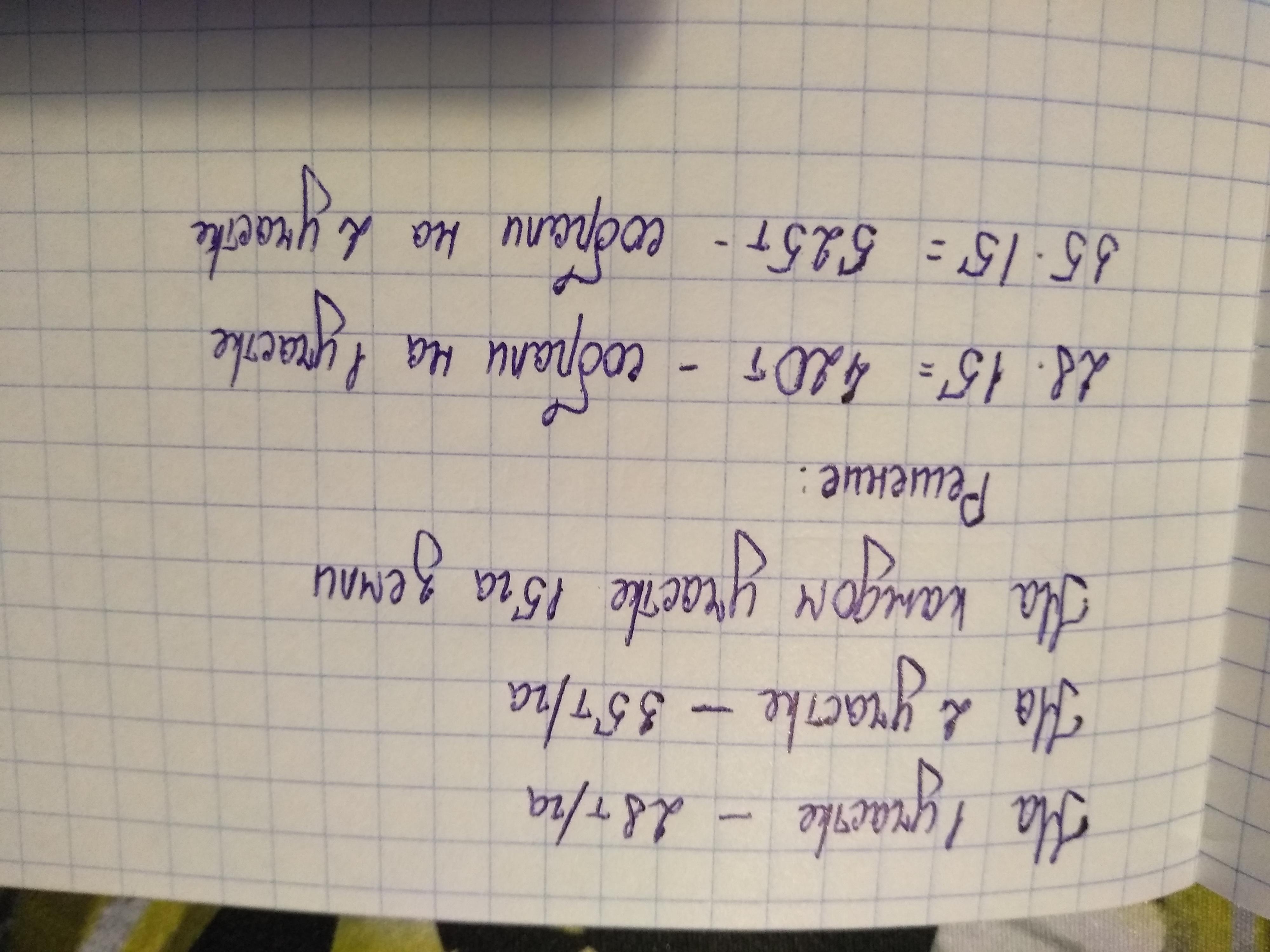 4 класс урожайность моркови на одном участке составляет 28т/га ,а на другой -35т/га . Какой урожай собрали на каждом участке, если под посадку было занято по 15 гектаров земли ? Помогите пожалуйста !!