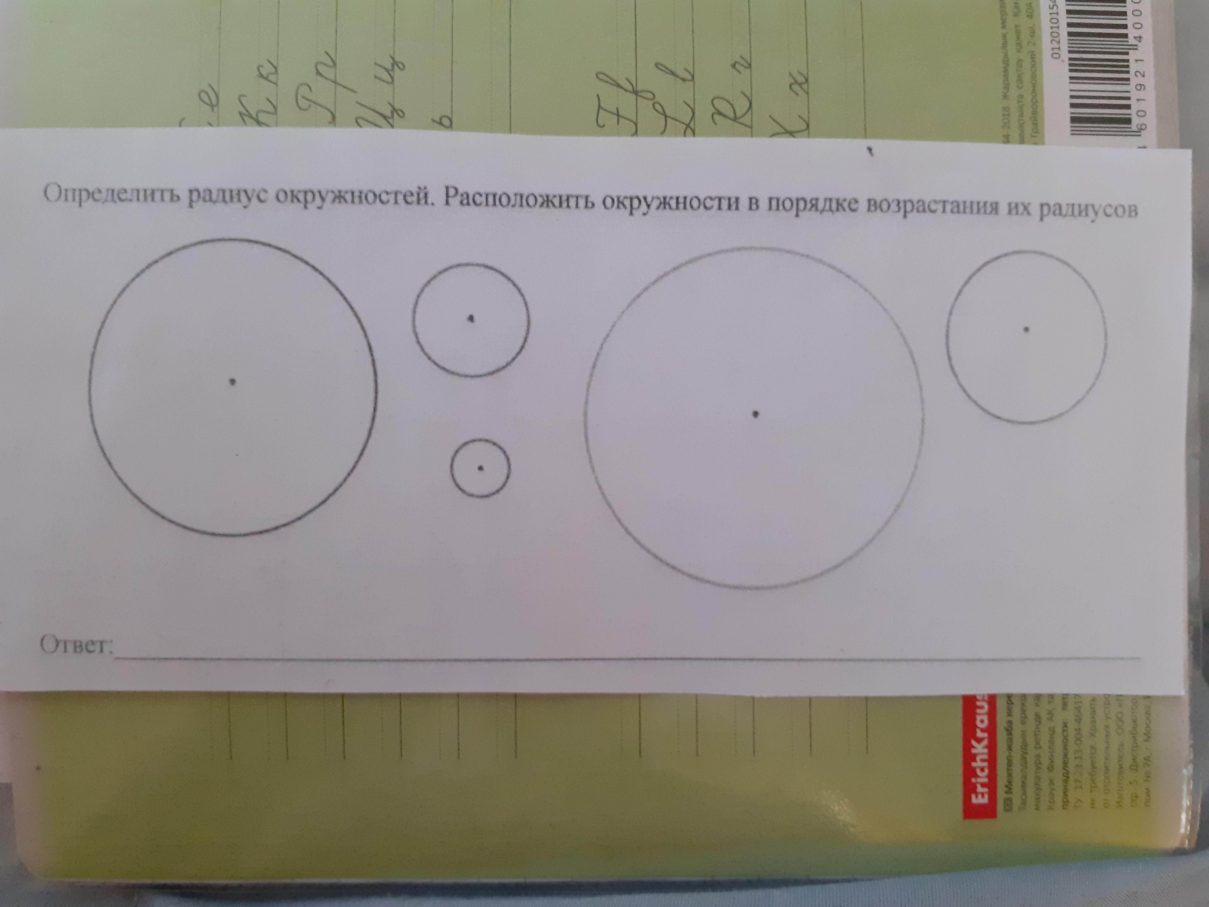 радиус окружности можно измерить линейкой приложив ее начало к центру окружности то есть к точке и до края ну то то есть до самой окружности ну а потом поставить их в правильном порядке