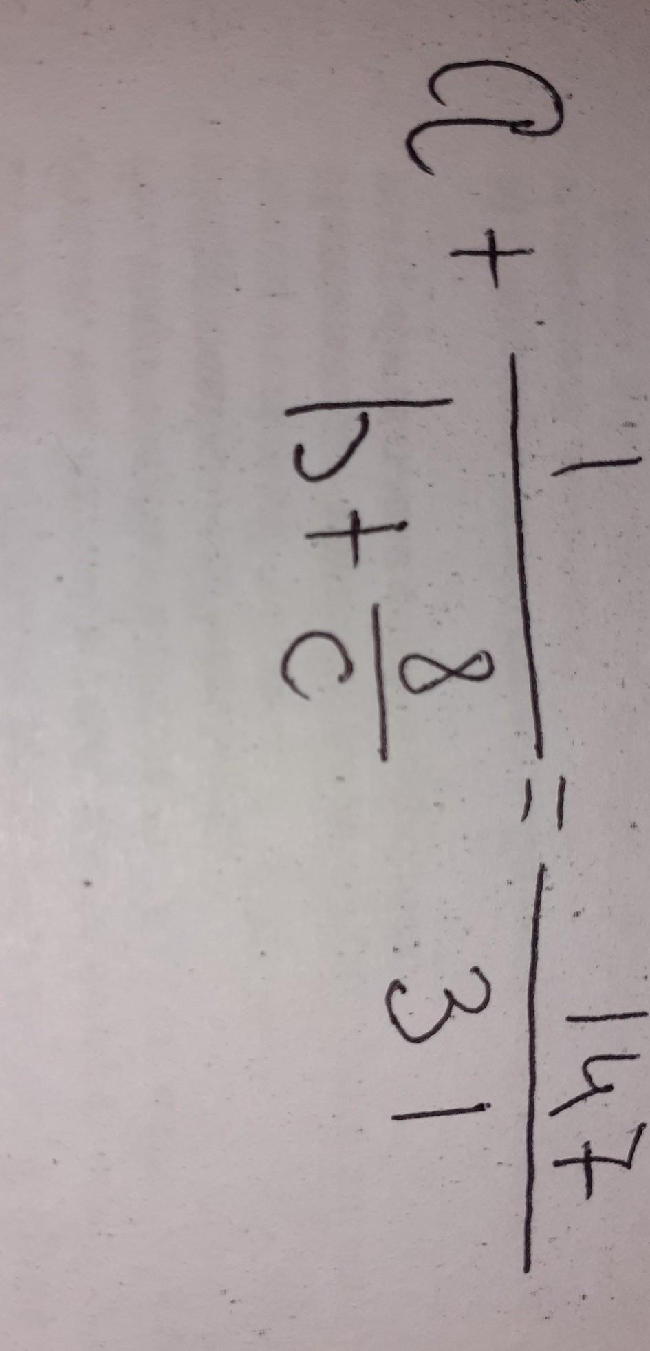 a + 1/(b + 8/c) = 147/31