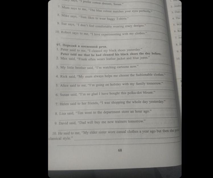 10) He told me that his elder sister had worn casual clothes a year before but then she had preferred classical style (10 предложение частично не видно на фото)