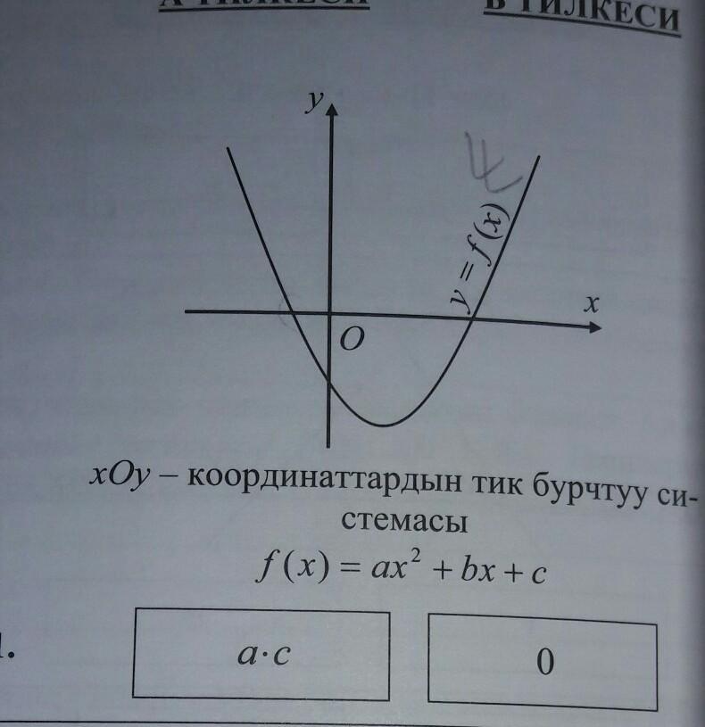 Произведение двух множителей а*с отрицательно, если а и с разных знаков и положительно, когда они одного знака. По рисунку а положительно, т.к. ветви параболы направлены вверх, с отрицательно, поскольку с-ордината точки пересечения параболы с осью ординат. По рисунку эта ордината отрицательна. Значит, произведение отрицательно. что обозначает а*с<0