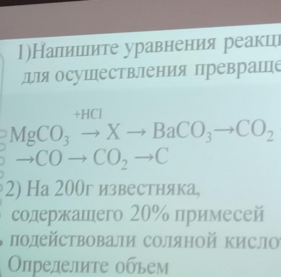 2.На 200 г известняка содержащего 200% примесей подействовали соляной кислотой определите объём получившегося углекислого газа