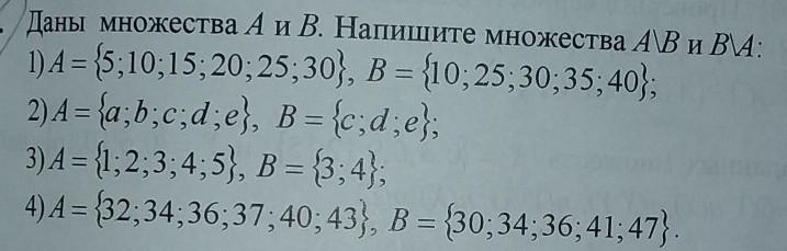 2) А/В {a, б } В/А {пустое множество}