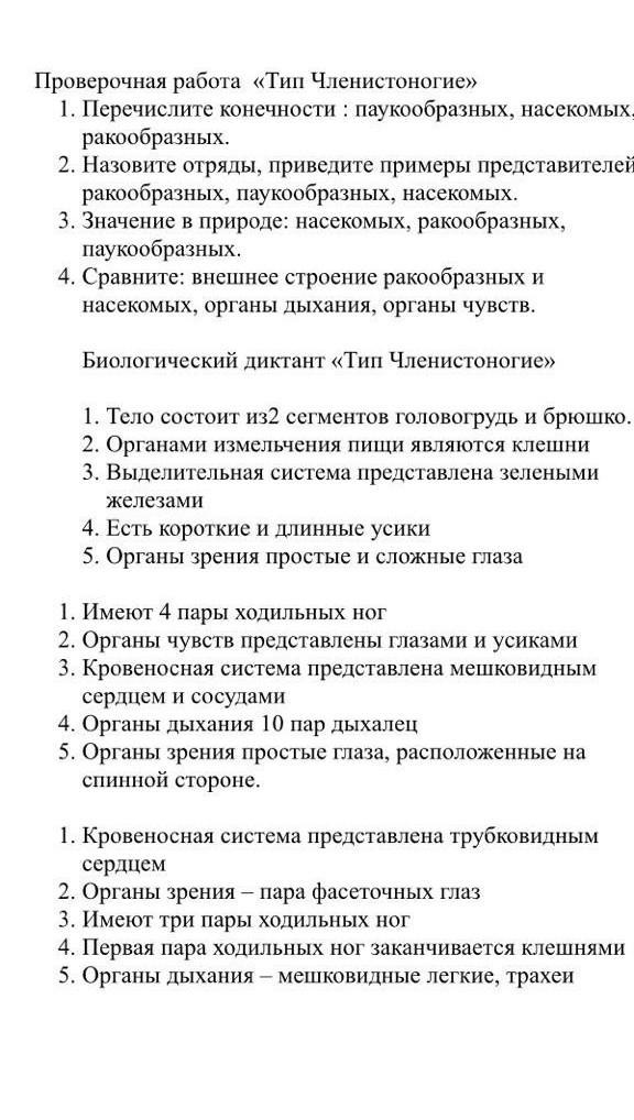4) У пауков и раков имеется 2 отдела тела: головогрудь и брюшкó, у насекомых - 3: голова, грудь и брюшкó.