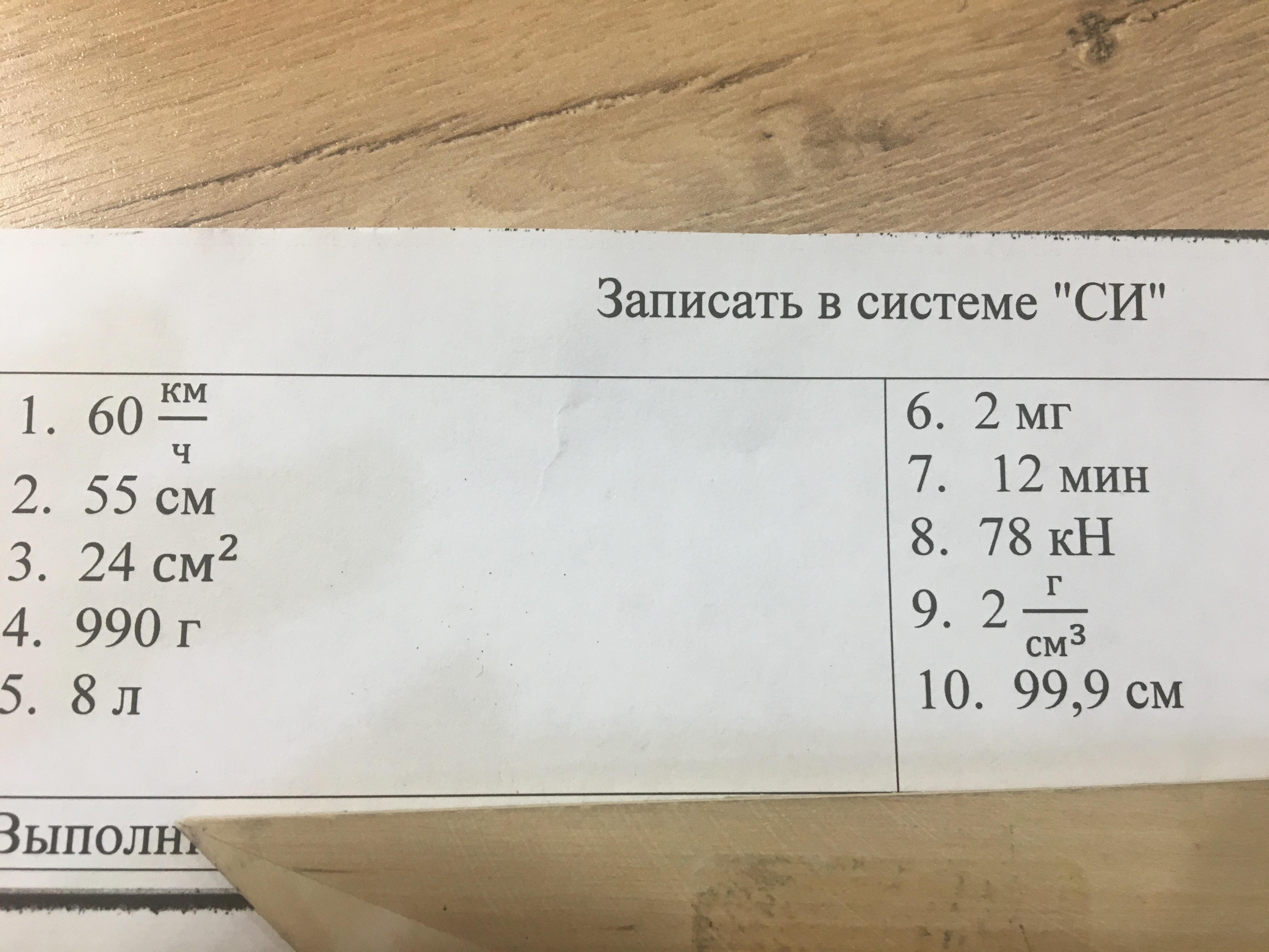 Решите пожалуйста. Нужно перевести это все в систему си (желательно с объяснением и порядком действий)