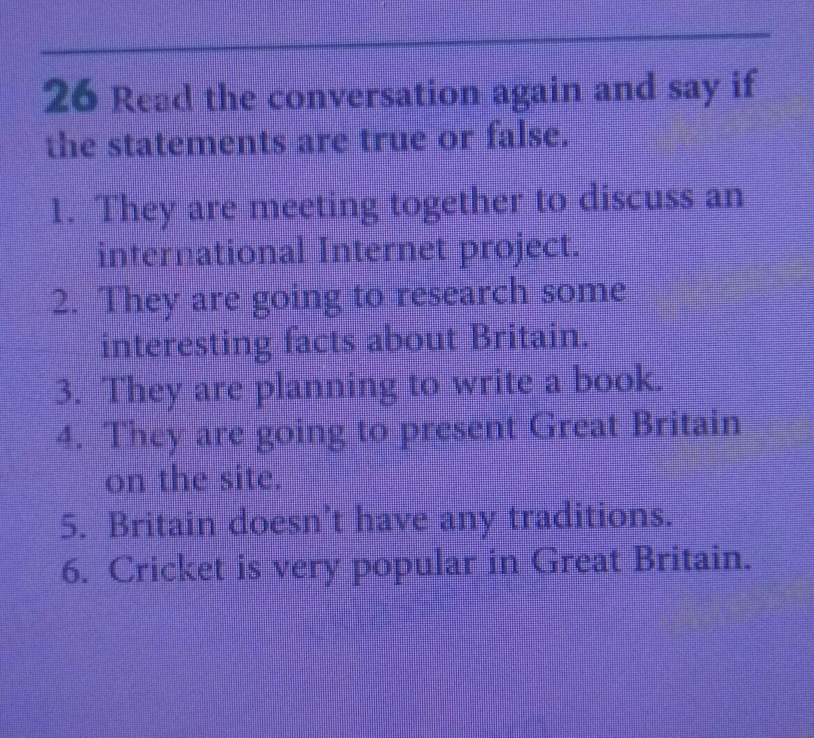 Прочитайте разговор снова, и утвердите верны они или ложны если: