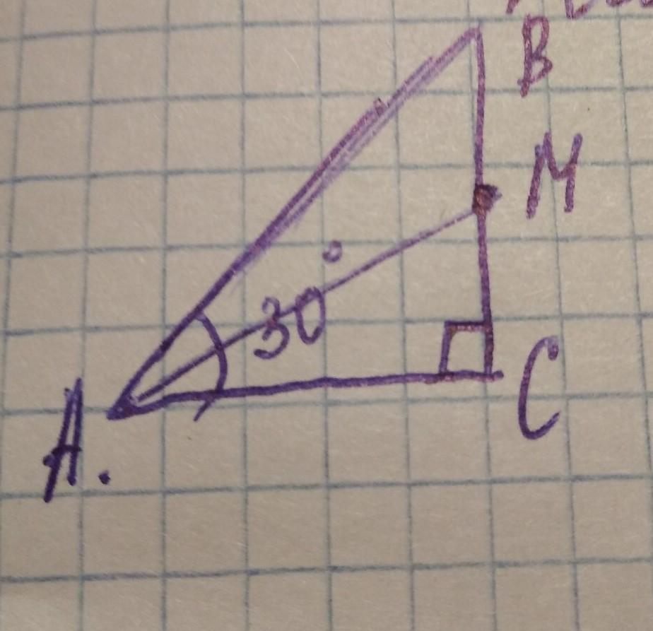 В треугольнике АВС, угол С равен 90градусов, угол А равен 30 градусов, АС=8 см. Найдите длину медианы АМ(ВСЕ ПОДРОБНО РЕШИТЬ)