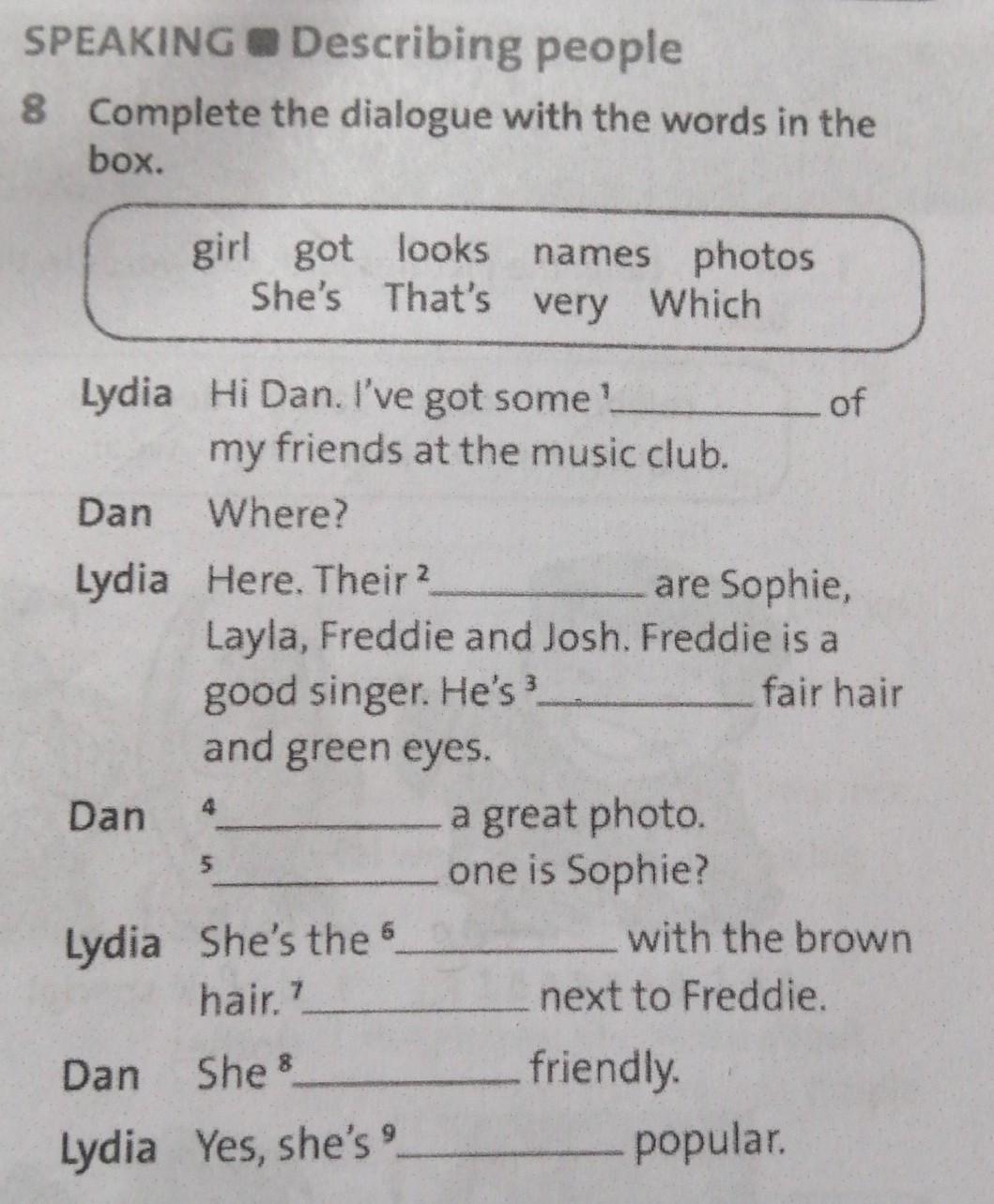 Здесь нужно было прочитать диалог и дополнить его по смыслу словами