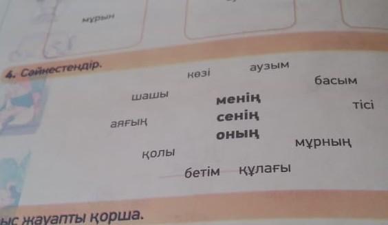оның көзі, оның шашы, оның қолы, оның тісі, оның құлағы