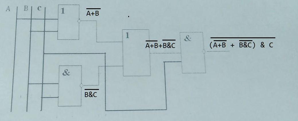 ¬((¬(A+B)+ ¬(B & C)) & C) = ¬((¬(A+B)+ ¬(BC)) C) =