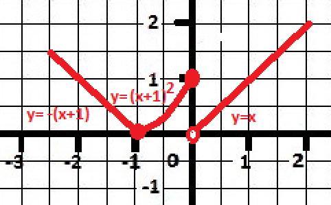 Второй участок - парабола: y = (x+1)² при -1 < x ≤ 0.