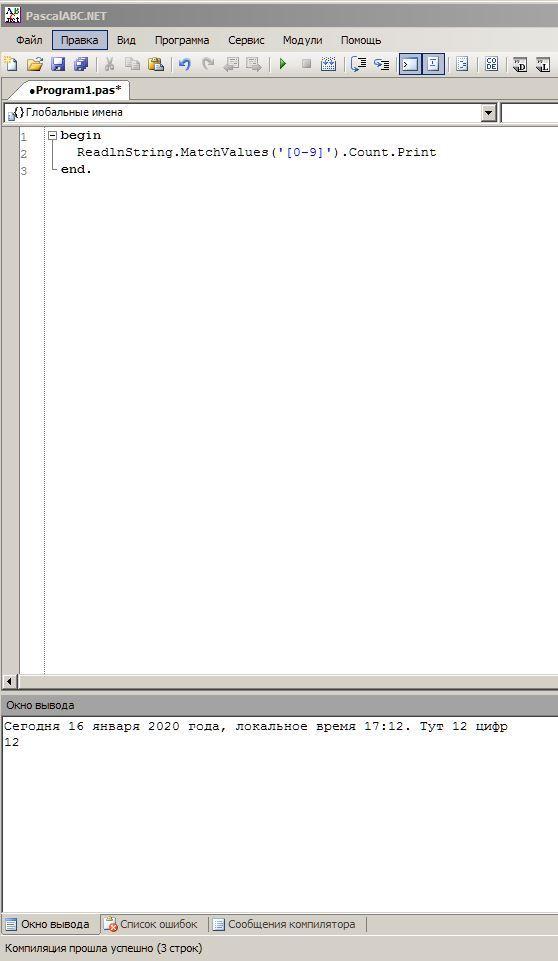 ReadlnString.MatchValues('[0-9]').Count.Print