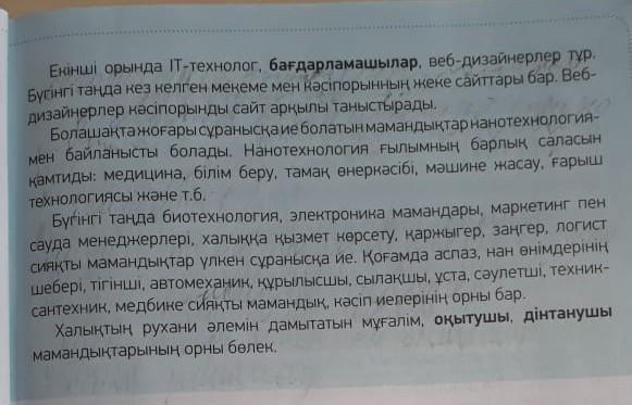 Ответ: на втором месте IT-технологи, программисты, веб-дизайнеры. На сегодняшний день существуют отдельные сайты любого учреждения и предприятия. Веб-дизайнеры знакомят предприятие через сайт. Перспективные востребованные специальности будут связаны с нанотехнологиями. Нанотехнология охватывает все сферы науки: медицина, образование, пищевая промышленность, машиностроение, космическая технология и др. На сегодняшний день востребованы такие специальности, как специалисты биотехнологии, электроники, менеджеры маркетинга и торговли, услуги населению, финансист, юрист, Логистик. В обществе есть такие профессии, как повар, мастер хлебобулочных изделий, портной, автомеханин, строитель, штукатур, мастер, архитектор, техник - сантехник, медсестра. Развивать духовный мир населения учитель, преподаватель, религиовед специальностей место отдельно.