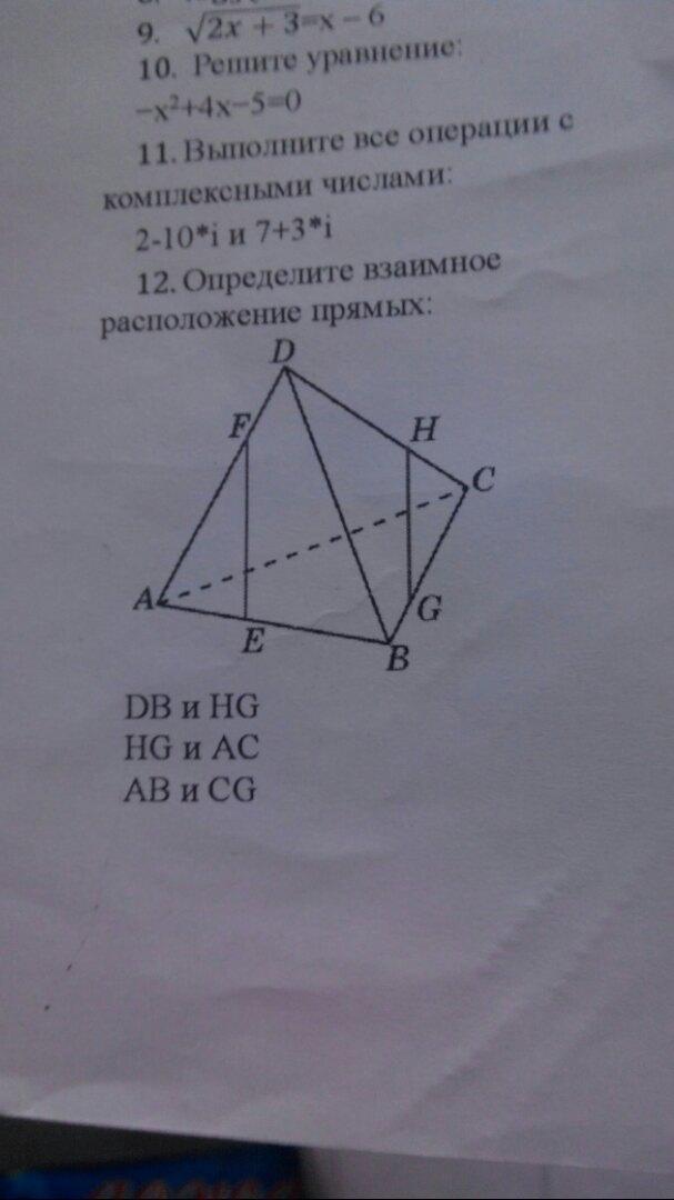 2) HG и AC - скрещивающиеся прямые, т.к. лежат в разных плоскостях.