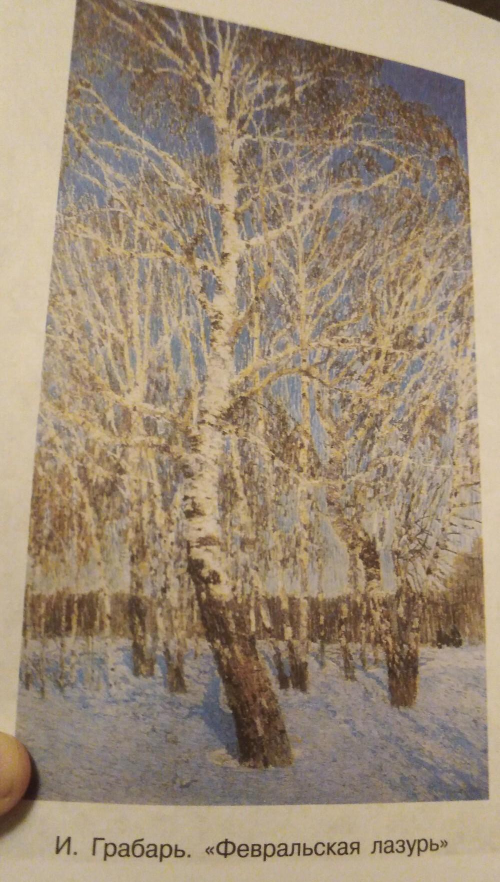 Мы видим картину замечательного художника Игоря Грабаря "Февральская лазурь". Как понятно из названия, действие картины происходит в феврале. Художник изобразил ясный, светлый, солнечный день в средней полосе России. На картине яркое голубое небо цвета лазури. Голубые отсветы неба лежат на начинающем подтаивать снегу, на березах. Эти белые красавицы, кажется, радуются погожему дню. Они протянули к небу и солнцу свои ветви-руки. А на заднем плане картины, на горизонте, стоит стеной березовая роща. Стоит и тоже ждет весну, радуется скорому её приходу.