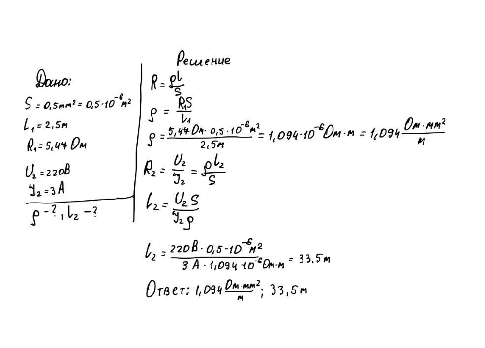 Ответ: 1.094 Ом * мм^2 / м; 33.5 м