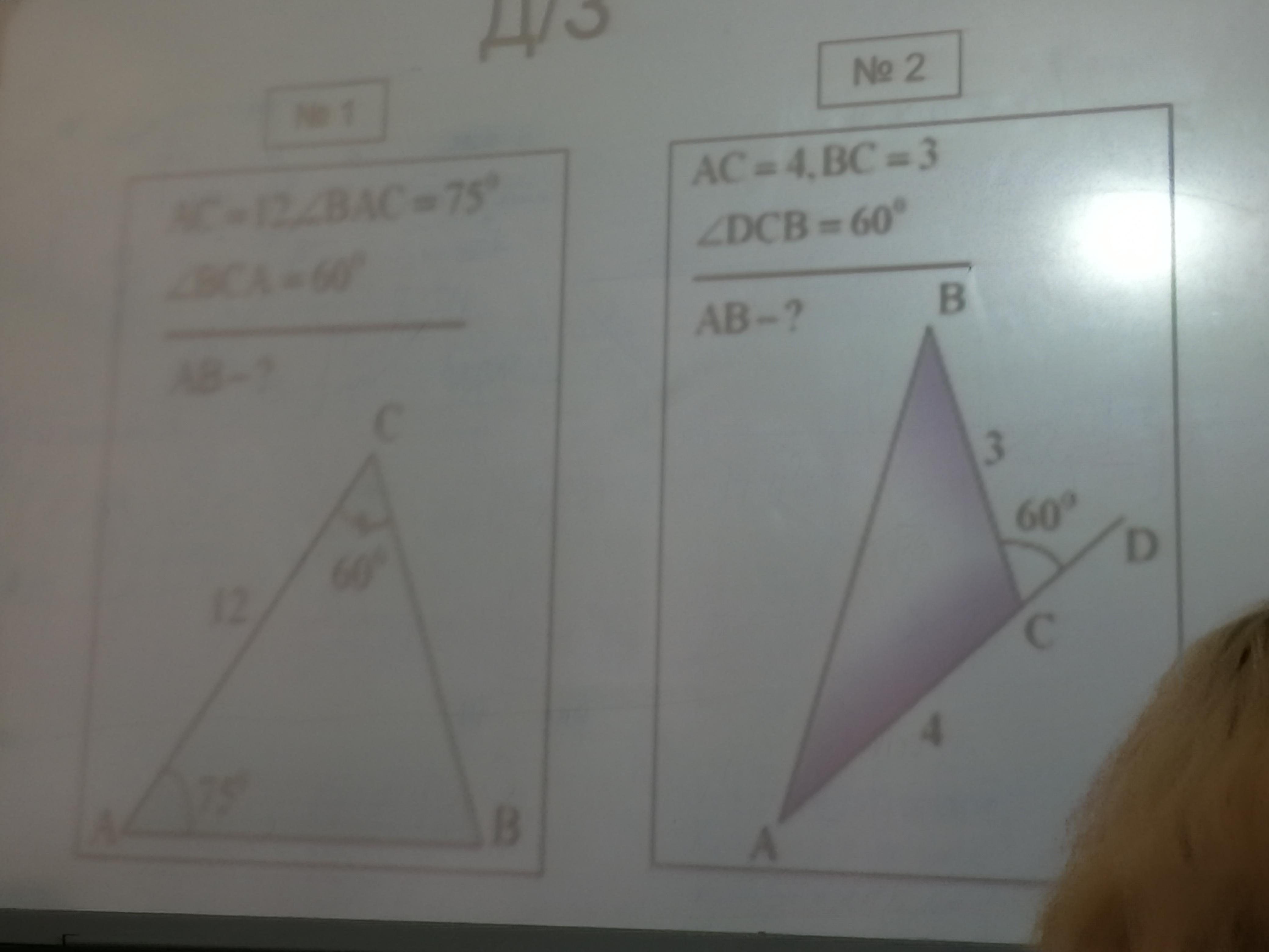 Объяснение: первый треугольник мне плохо видно, во втором угол C= 180-60=120 градусов, т.к. смежные углы в сумме 180