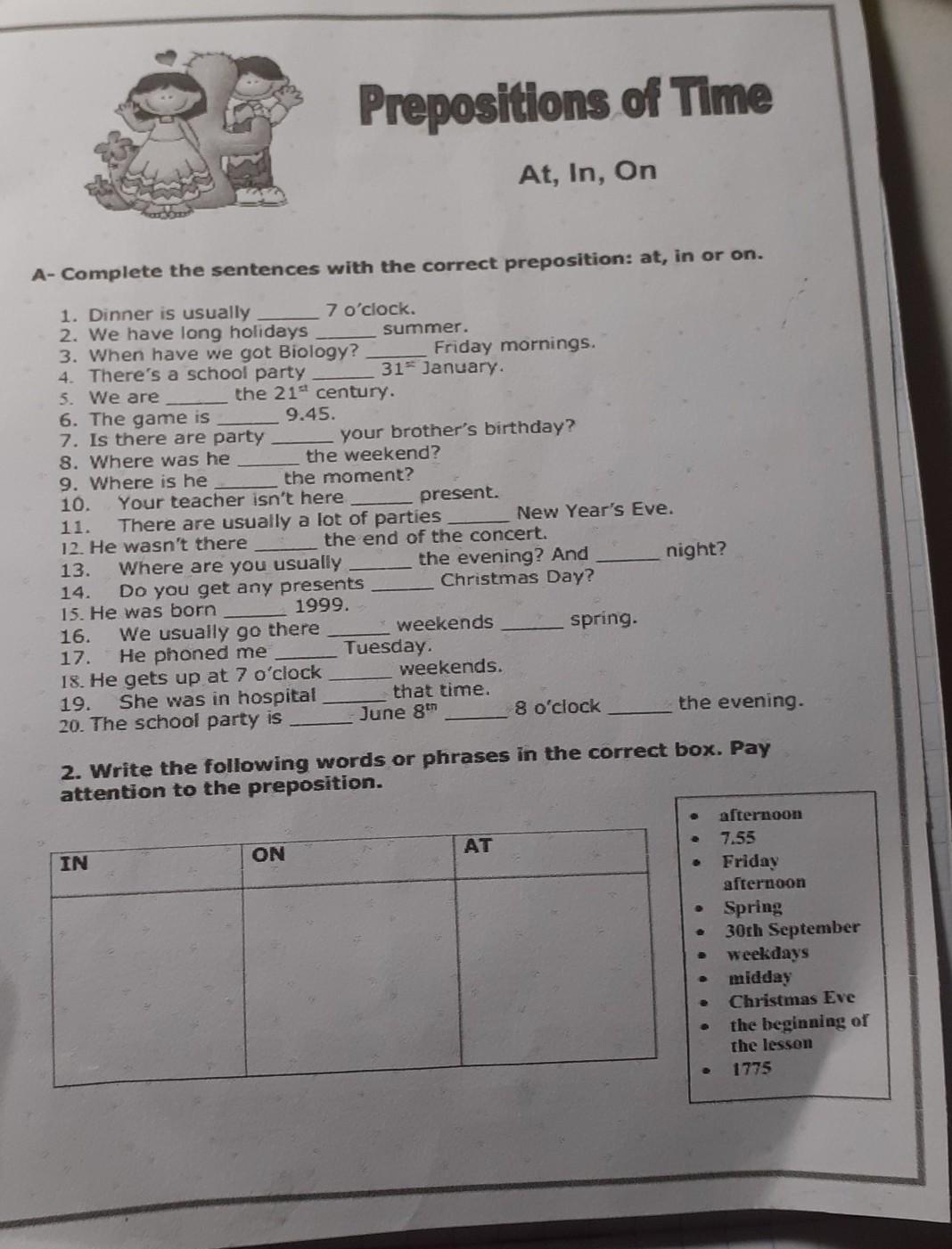 1)at 2)in 3)On 4.on 5. 6.at 7. 8.at 9.at 10.at 11.on 12 at 13.in 14on 15in 16 at, in 17.on 18.at 19 at 20 on, at, in