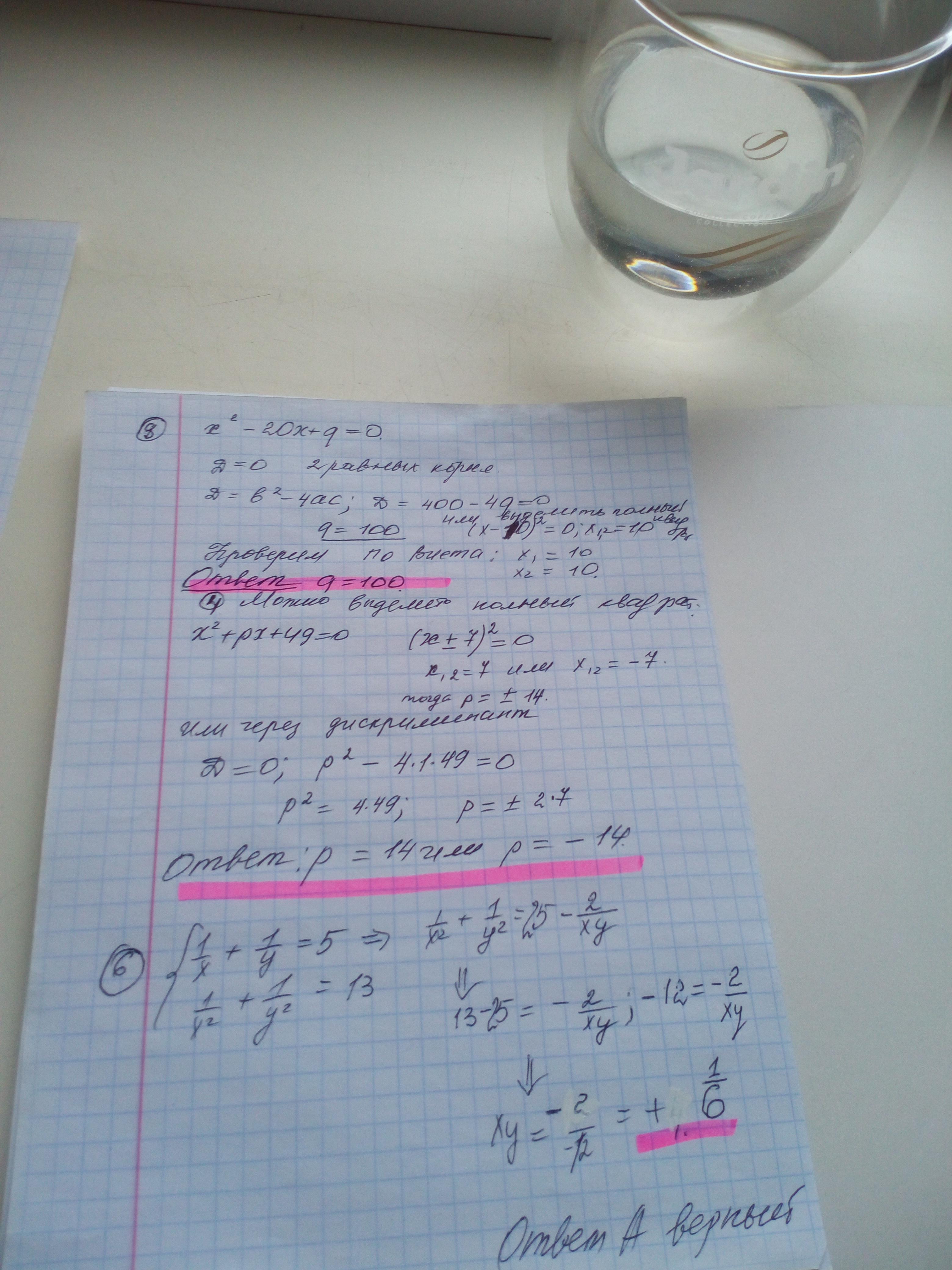 8. При каком значении q уравнение x^2 -20x+q=0 имеет два равных корня ?