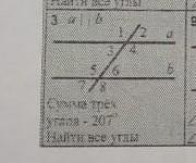 Объяснение: Сумма углов на одной стороне, например, 1 и 2 будет равна 180, на двух сторонах 360. 360 - 207 = 4 угол = 153. накрест лежащие равны всегда, плюс и снизу тоже равны из-за того, что прямые параллельны