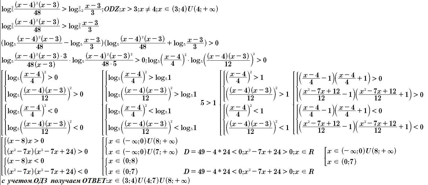 У меня получилось (3;4) U (4;8) U (8;+бесконечность). Откуда 7-ка - не пойму...