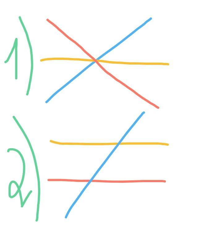 2 способ) имеют две точки пересечения (2 прямые параллельны, а третья является секущей к первым двум)