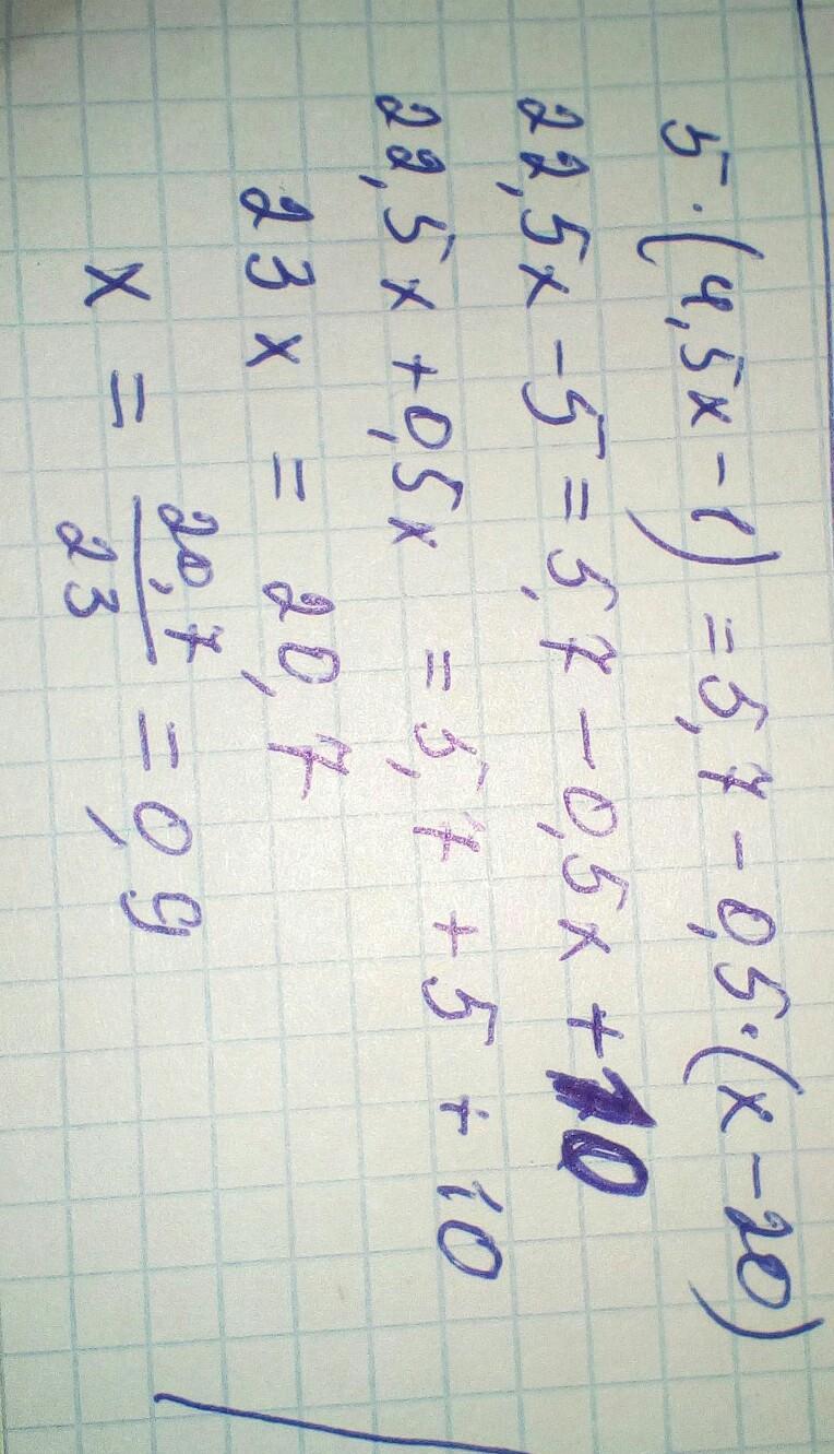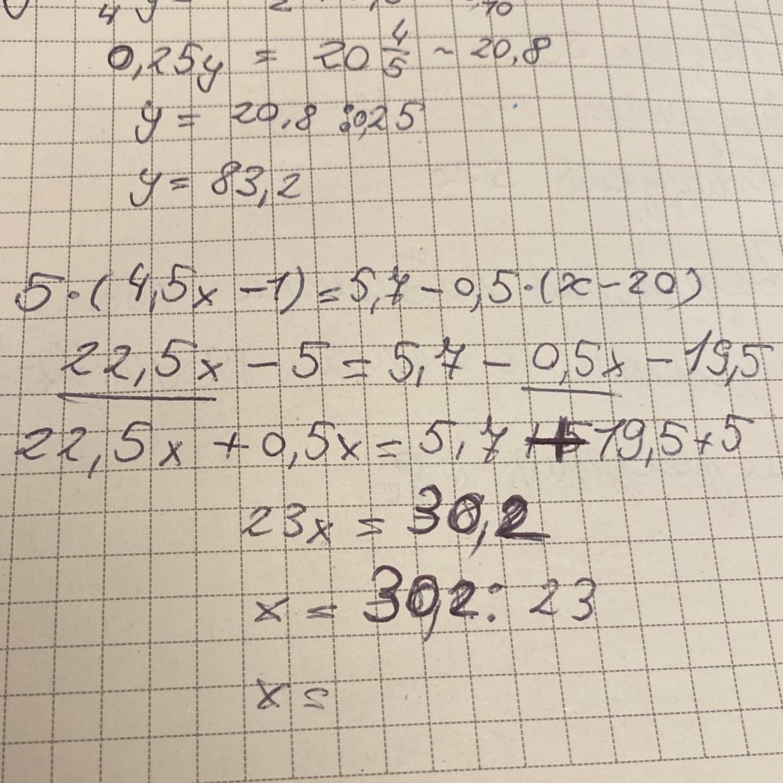 когда раскрывали скобку в правой части надо было -0,5 *(-20)=+10,а у вас -19,5.попробуйте исправить и решать дальше.