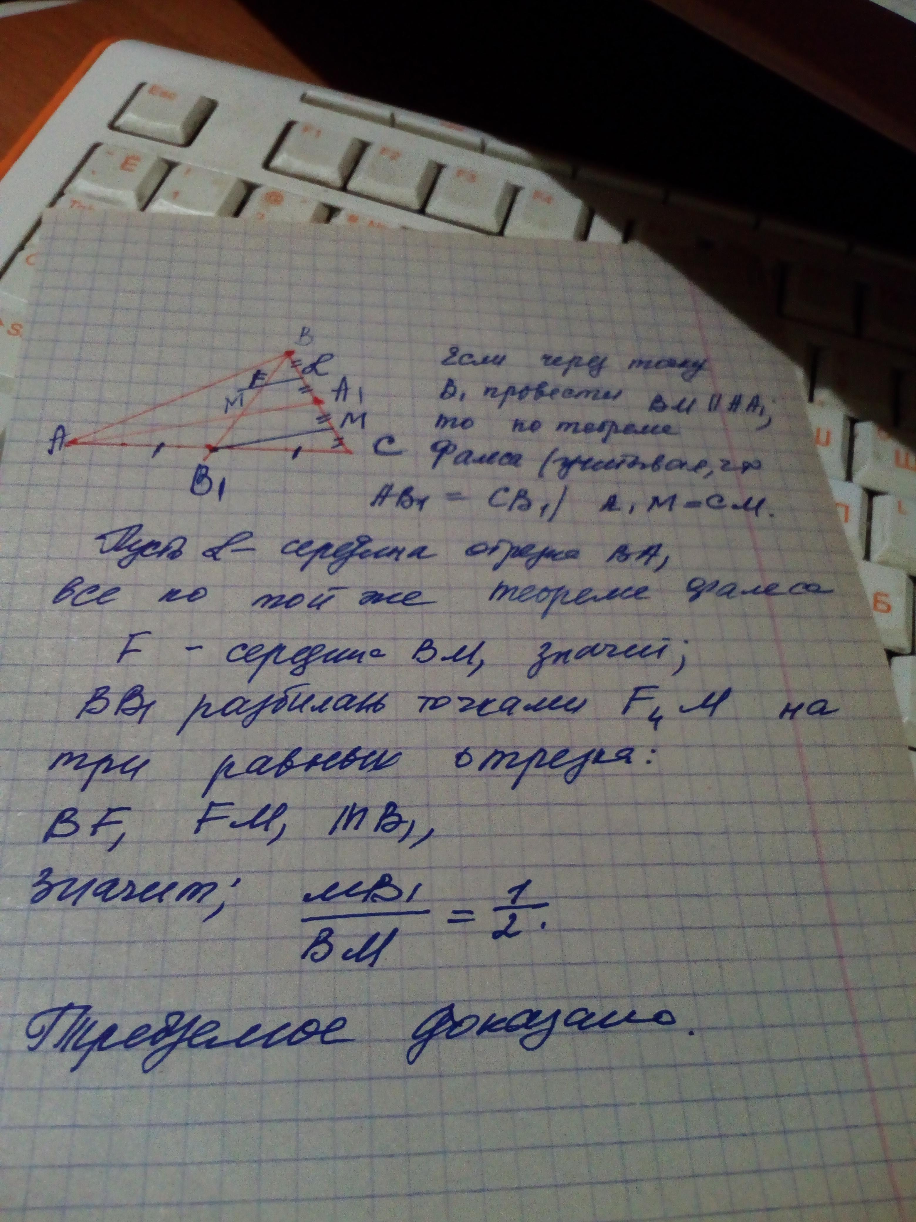 если медианы аа1 и вв1 треугольника авс пересекаются в точке м(должно получиться MA1=1/2 AM)